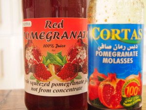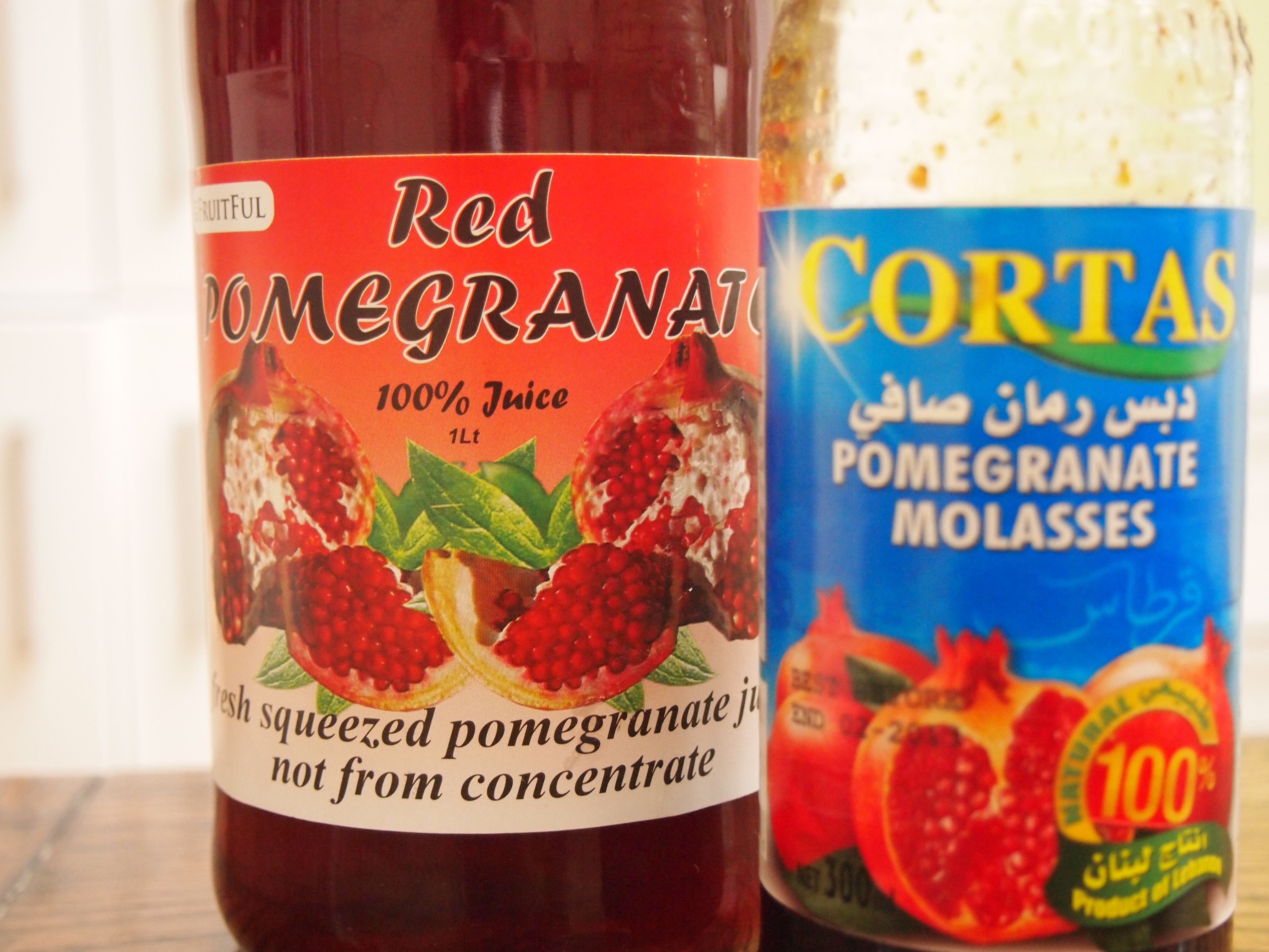 In the same pan, add another splash of oil with the onions. Stir well being being sure to catch the sticky bits at the bottom of the pan. Cook slowly for 15minutes, till onions are soft, adding the chilli, garlic and coriander for the last 5 minutes. Stir in passata, molasses, pomegranate juice and water.