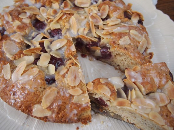 This is great cake to have with a cup of tea or coffee. It’s easy to throw together and you won’t need to get out any heavy machinery in the way or processors or mixers. The fruit can be switched around to suit whatever you have on hand, raspberries or blueberries would work well, fresh or frozen.