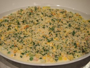 Stir gently to combine then pour the mixture into an ovenproof dish. In a small bowl combine the breadcrumbs, extra finely grated cheese and parsley and sprinkle over the tuna.