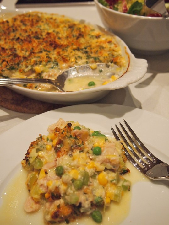 This recipe might not win any awards for culinary expertise but its very simplicity is what makes it such a comforting dish. It’s easy to throw together which makes it a perfect midweek meal. I didn’t add any pasta to this as we wanted a carb free night and we actually didn’t miss it. But if you wanted to stretch this out to feed the family then by all means add some cooked small shaped pasta to the mixture before toping it with the cheese and bread crumbs.