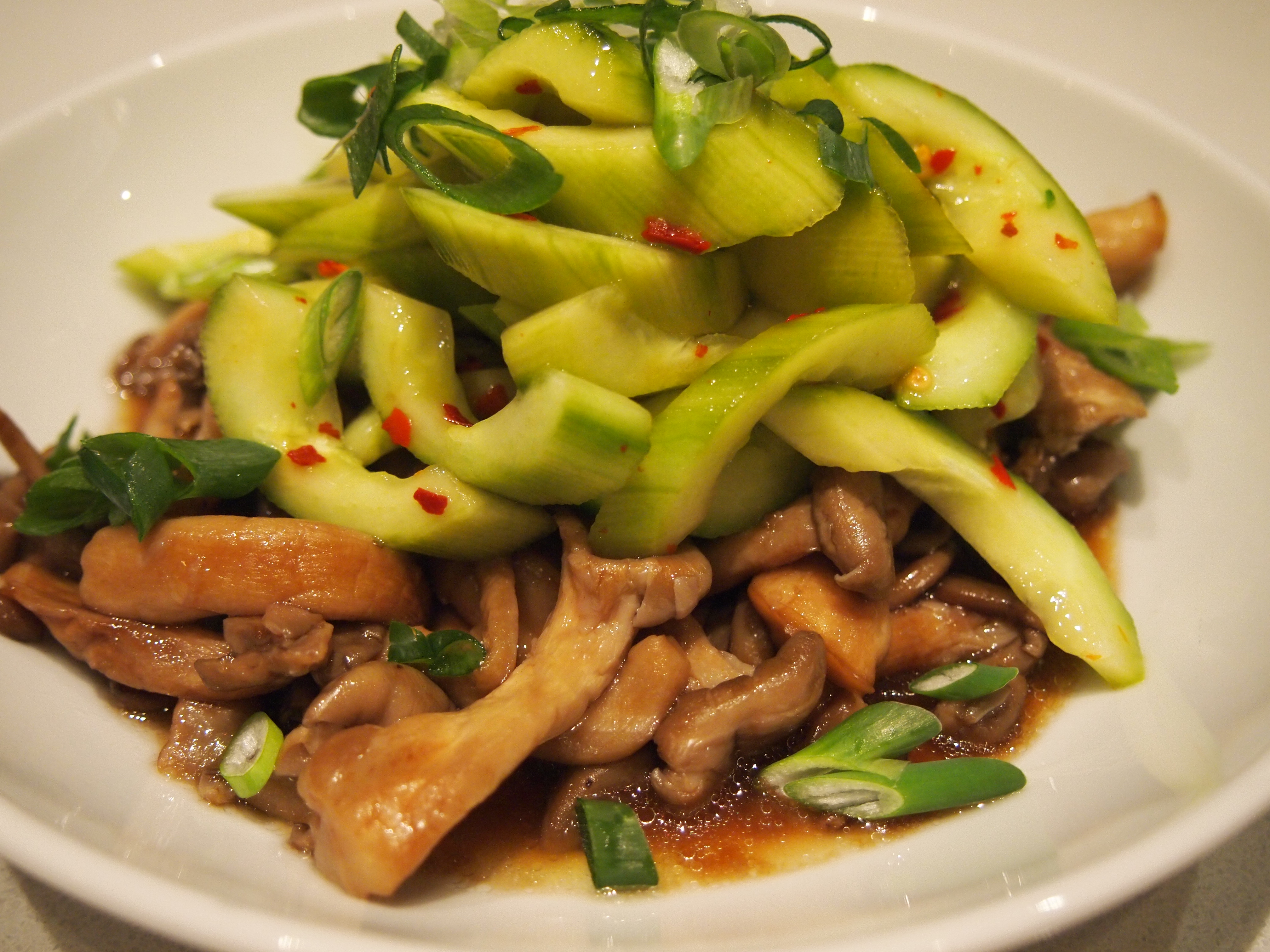 Hot & Sour Cucumbers with Sticky Mushrooms