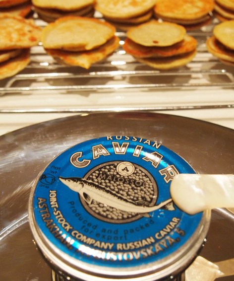 A few Friday nights ago we had some friends over for dinner. In the afternoon I received an email from them telling me they had a tin of Russian caviar they’d like to bring over to share with us – I know, what great friends! A batch of blini to accompany them would be needed pronto. I’d never made traditional blini before so I wanted a foolproof recipe and who else to turn to in times of need other than the Barefoot Contessa, Ina Garten. These small Russian style pikelets are traditionally made using a small amount of buckwheat flour which is very fine and gluten free. Ina came up trumps – the blini were wonderful and topped with creme fraiche and caviar they were such an indulgent treat. Of course if you don’t have friends who are willing to share their caviar then a topping of creme fraiche and salmon roe or smoked salmon would be wonderful too.