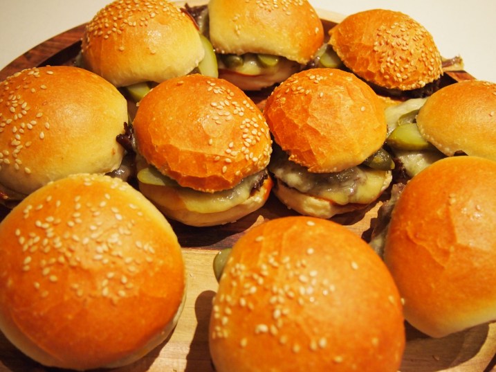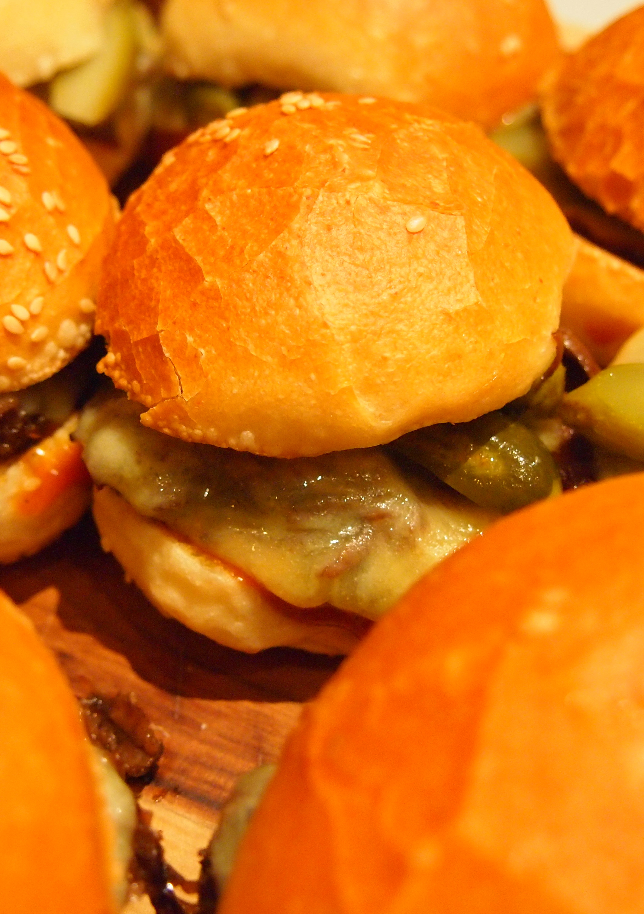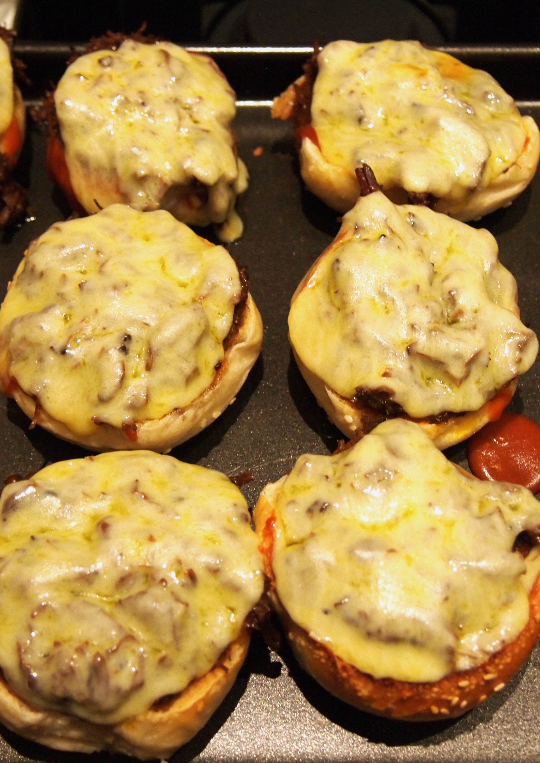 Sliders are basically just mini hamburgers. There’s something fun about eating food that has been miniaturised – mini hotdogs, mini muffins, mini pizzas, you get the drift. Normally sliders are filled with a smaller version of the usual minced hamburger patty but these sliders are filled with slow cooked beef cheeks in a rich jus which makes them a little more grown up and even more delectable. And if that wasn’t enough, they’re topped with a smoky tomato sauce, aged cheddar and dill pickles. The beef cheeks take a while to braise but the good thing is that they can be made a day or two in advance so when it comes to making the sliders it’s just an assembly job which is handy if you’re making these for a party and have a lot of other cooking to take care of.