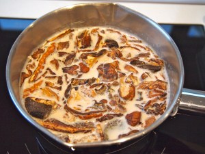 Preheat the oven to 190C. Warm the milk in a saucepan, add the porcini mushrooms, remove from the heat and soak for 10 minutes. Strain through a sieve suspended over a bowl, pressing lightly on the mushrooms with the back of ladle to extract all the milk.