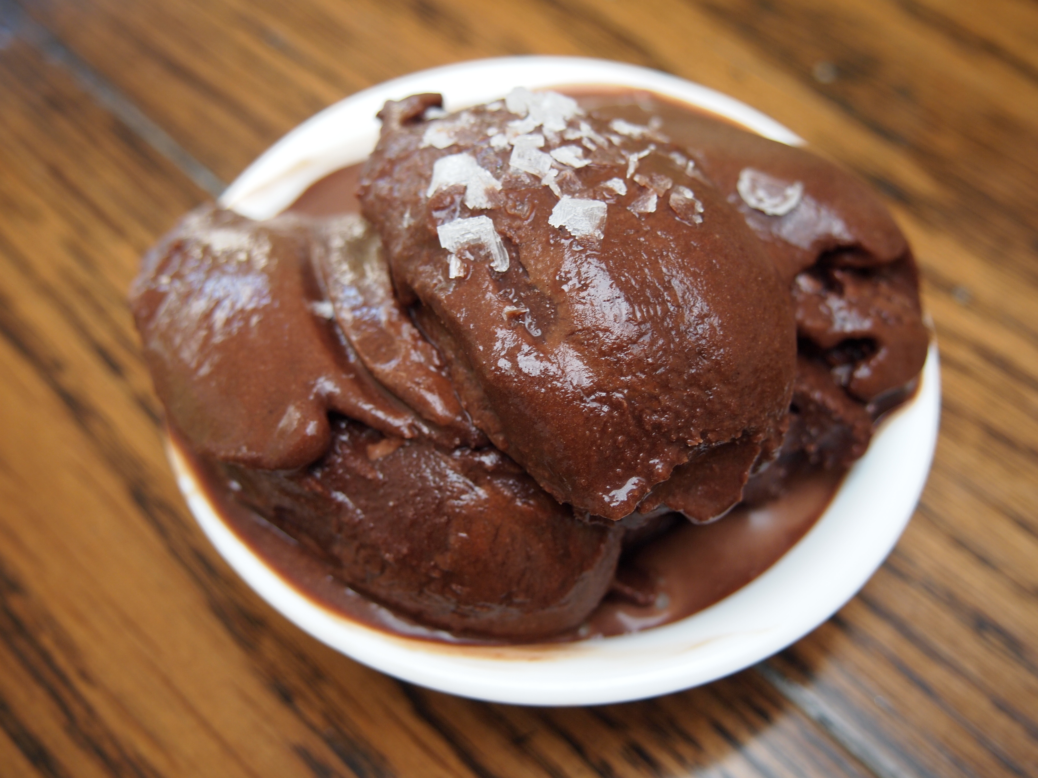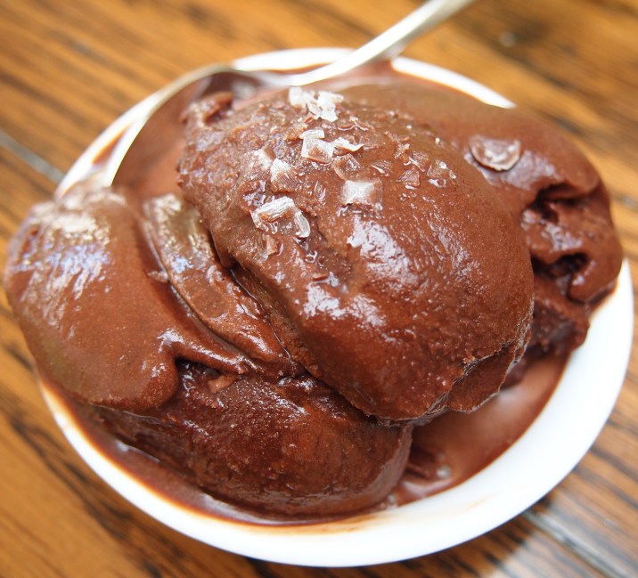 This amazing sorbet is the creation of David Lebovitz but I think it’s almost misleading to call it a sorbet, even though technically that’s exactly what it is as it contains no dairy. To me sorbets bring to mind icy and grainy textures and this sorbet is anything but. It’s so dense and smooth you would swear that it was made from a custard base of eggs and cream like most ice creams are. My niece thought it tasted like frozen chocolate fudge or mousse, and lets face it that’s no bad thing! Try adding a sprinkle of flaky sea salt when you serve it – it really amplifies the chocolate flavour.