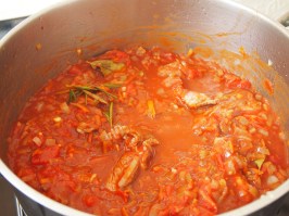 Heat 2 tablespoons of oil in a large, heavy-based saucepan over high heat. Cook lamb in batches for a couple of minutes on each side until browned. Transfer to a bowl. Heat 2 tablespoons of oil in the same pan. Add onion, carrot and celery and cook over medium heat for 5 minutes or until softened. Add garlic and cook for a further minute. Stir in tomato paste and cook, stirring occasionally for 2 minutes or until combined. Add herbs, spices, wine, 1 teaspoon salt and tomatoes and bring to the boil. Return lamb to the pan and cover with a tight fitting lid. Reduce heat to low, cover and simmer for 1½ hours. Uncover and cook for a further hour or until the lamb is very tender and sauce has reduced. Using two forks shred the lamb and remove the cinnamon stick, bay leaf and rosemary sprig. Season the sauce with salt and pepper. Set aside.