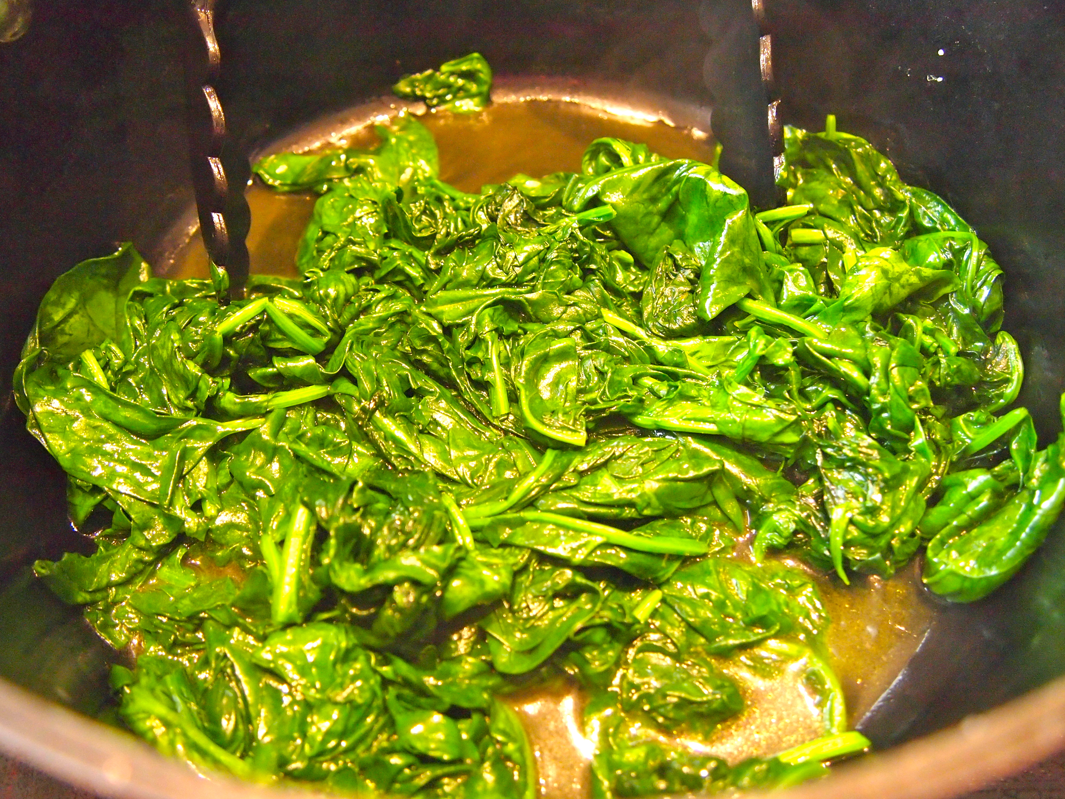 2 large bunches of english spinach, leaves removed from stalks and thoroughly washed and drained
