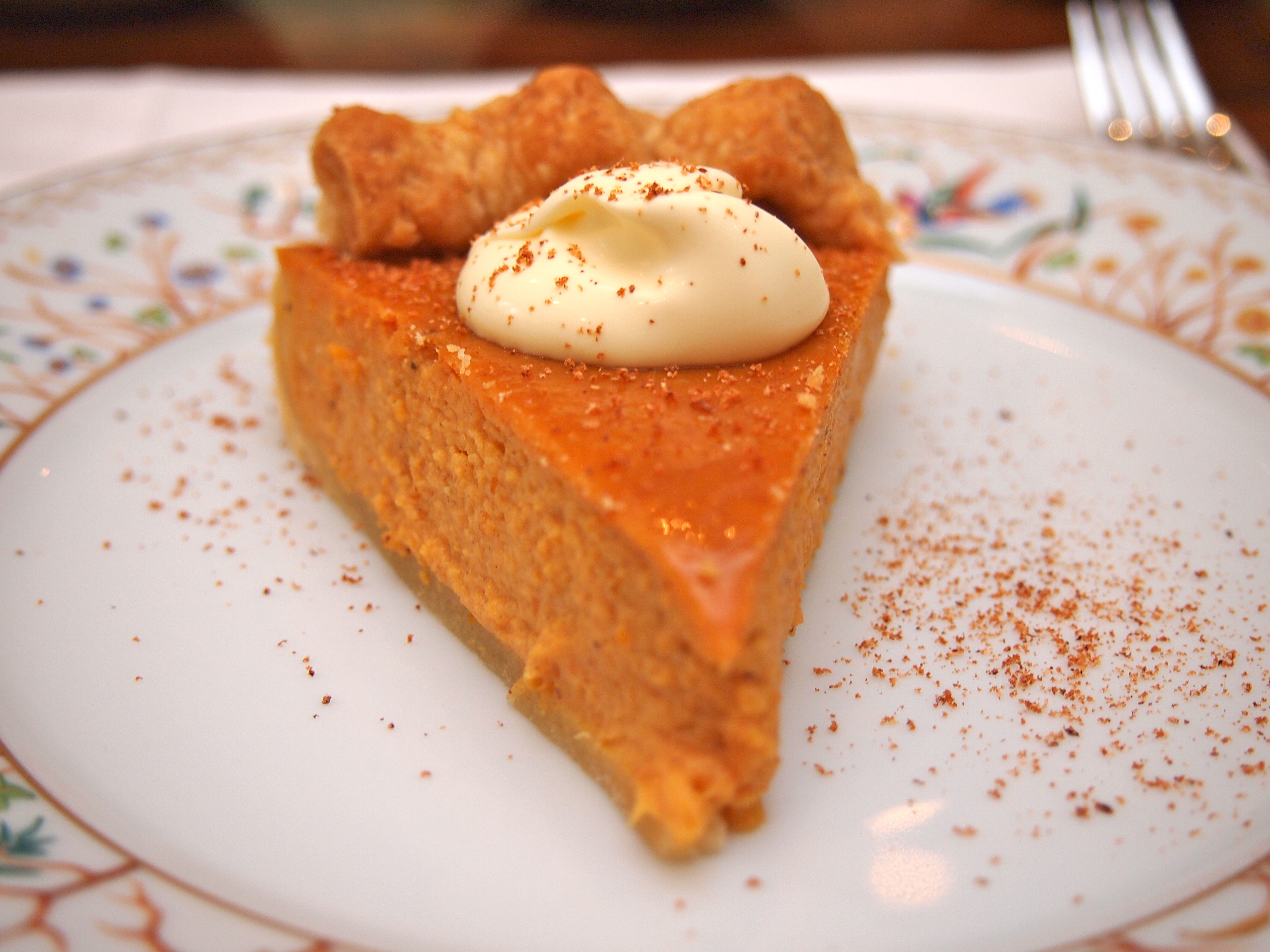 Pour the filling into the pie crust and tap it on the counter a couple of times to get rid of any air bubbles. Place the pice in the preheated oven and bake at 210C for 15 minutes. Then lower the heat to 180C and bake for a further 30-35 minutes or until the pie just has a slight wobble in the centre, it will continue to cook and set as it cools. Bring the pie to room temperature before chilling or attempting to slice. Serve with a dollop of whipped cream with a little extra grated nutmeg on top.