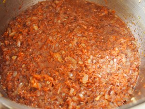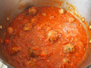 Cook for 20 minutes then add the fried meatballs and gently stir them into the sauce. Cook covered for another 45 – 60 minutes. You can cook for longer if you wish, the sauce will get more flavourful but ensure your heat is very low and check every now and then to make sure there is enough liquid, adding some water if needed. I like my sauce to be fairly thick so at the end of the cooking time I sometimes remove the lid and increase the heat to reduce the sauce a little but this isn’t always necessary.