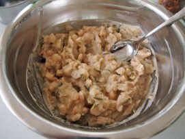 To make the prawn crostini, heat 3 tablespoons olive oil in a frypan over medium heat. Add the sliced garlic and cook for a few minutes, then season with salt. Add the beans, stock or water and rosemary and cook for about 10 minutes or until the beans are very soft. Remove from the heat and drain, reserve the liquid. Mash the beans with a fork or the back of a spoon (add some of the reserved liquid if the paste is too dry) and drizzle with 3 tablespoons olive oil and a generous squeeze of lemon. Heat 4 tablespoons of olive oil in a frypan over medium heat. When hot add the chopped prawns and cook until just changed colour. Season, then add the parsley and a good squeeze of lemon juice. Spread the mashed cannellini beans generously over the toasted bread and spoon the prawns over the beans and season with a generous grinding of black pepper.