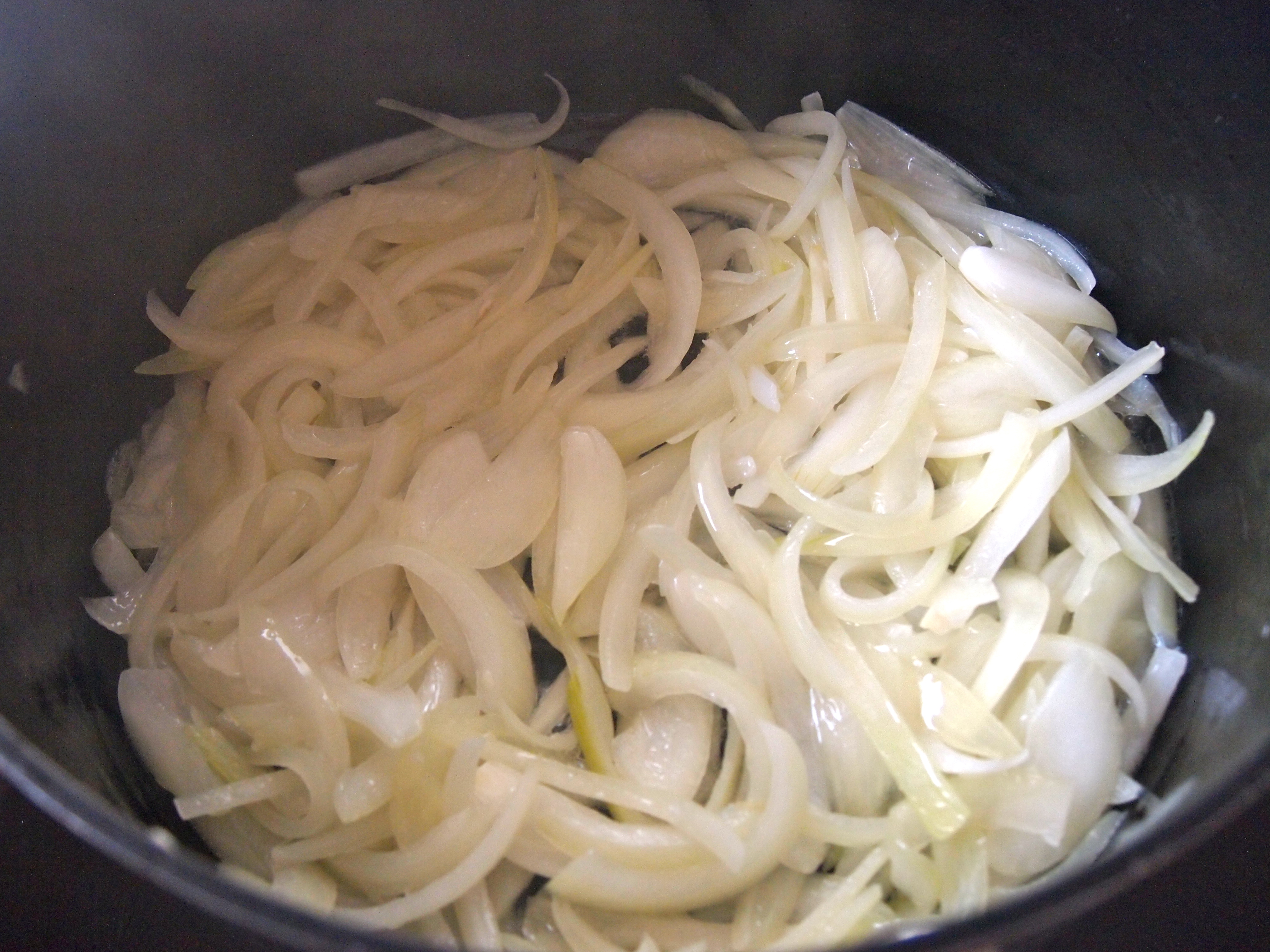 2 large onions, peeled, cut in half and cut into thin slices (not too thin)