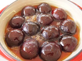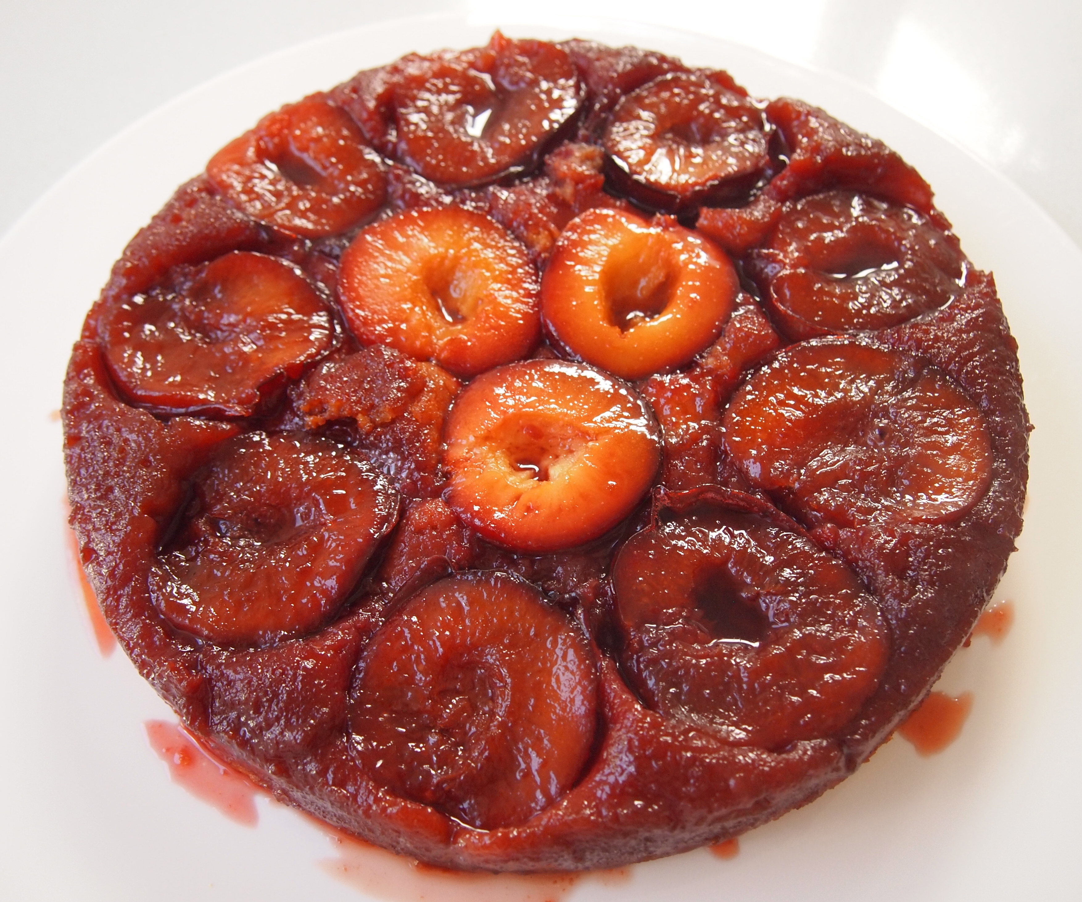 This recipe is a little spin on the traditional tarte tatin and comes courtesy of the Barefoot Contessa, Ina Garten. Instead of shortcrust pastry being used to cover the caramelised fruit, in this case plums, a small amount of cake batter is made – literally just enough to spread over the top of the fruit and then baked and inverted in the same way as a traditional tarte tatin. At first I thought it would be similar to an upside down cake but it really isn’t as there is more fruit than cake so it has the appearance and shallow depth of a tart but using cake batter instead of pastry – very clever really. The result is a wonderful cake that has all the wow factor of a tarte tatin but is simpler to make and very delicious; the caramelised juices from the fruit soaking into the dense batter make this cake very moreish. I served this for dessert with cinnamon ice cream and the leftovers were just as good eaten cold from the fridge the next day.