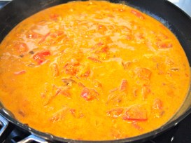 This recipe is a bit of a mish-mash of cuisines; it’s part South-East Asian, part Indian and with the pasta element, part Italian. A little confused I admit but it’s quite addictive. You could limit it’s culinary passport somewhat and replace the angel hair pasta with noodles or rice but Italian pastas have a different, softer texture and I prefer them here to the denseness of Asian noodles. This is real comfort food and made all the better for how quickly it can be put together. If I can’t decide what I’m in the mood for but want something tasty, satisfying and quick this is what I make and it tick’s all the boxes. You can make this as spicy or as mild as you like and if you’re making it for the family you can leave the chilli element out entirely without any ill effect. In fact I think this would be a sure fire hit with the kids – that slight sweetness from the peanut butter and palm sugar is very alluring for both children and adults alike. So next time you’re torn between Italian or Asian for dinner, why not have both?
