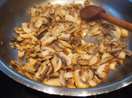To the same pan add half the remaining butter and the mushrooms. Cook stirring occasionally until the mushrooms have softened and just starting to brown. Season with salt and pepper and remove from the pan and set aside with the onions.