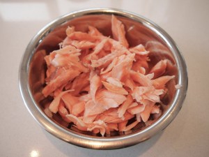 1 whole smoked rainbow trout – skin removed and flesh taken off the bones in small chunks