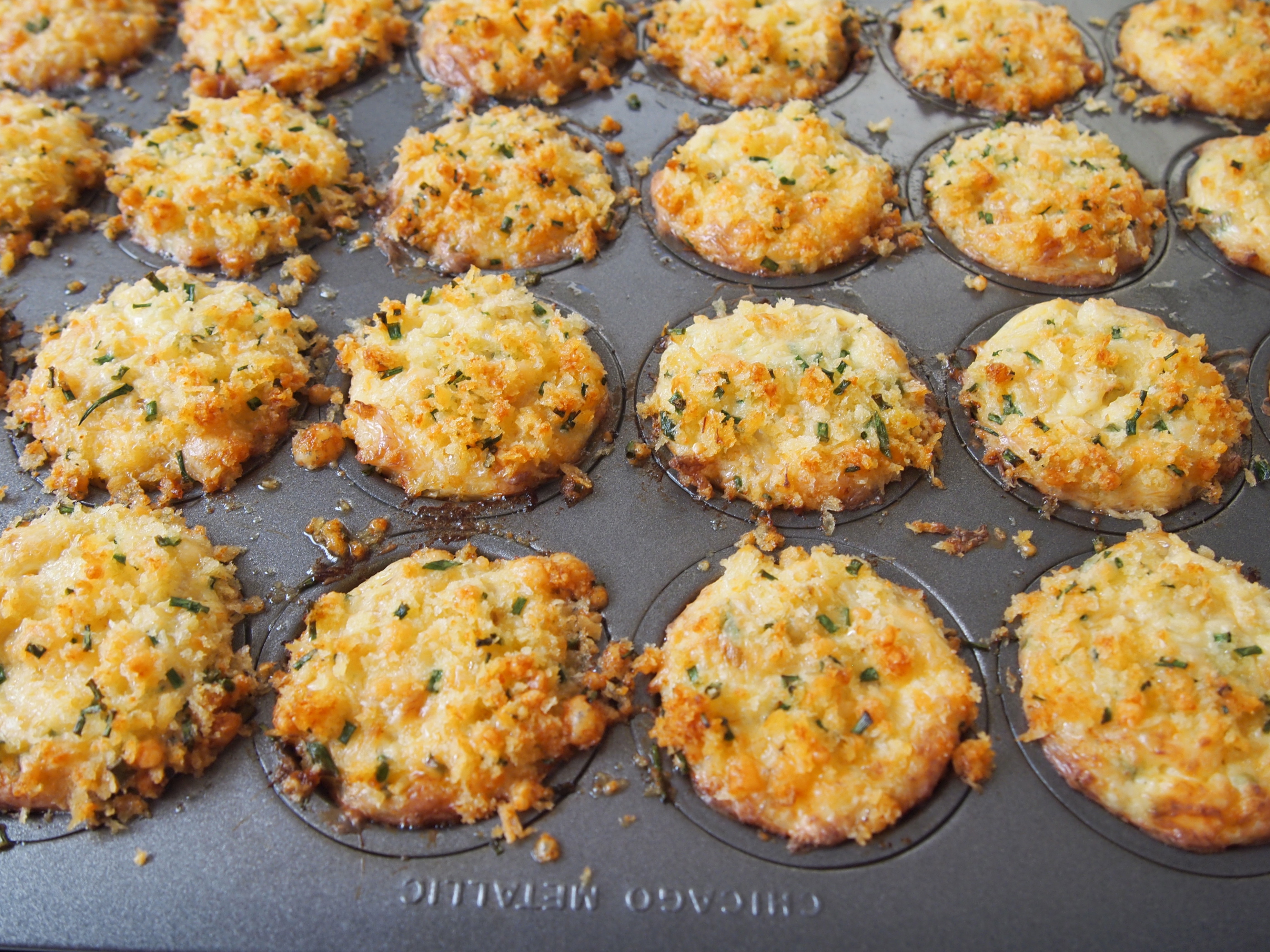 Crab cakes are delicious served large or small and these little mini ones make a lovely indulgent appetiser and I can’t think of a better way to kick off New Years Eve. Apart from being delicious, they are insanely easy to make with no frying involved. In fact, they can be made ahead of time and then given a quick blast on a baking sheet to crisp them back up just before serving. These crab cakes are a little different to the usual fried variety in that a panko bread crumb and herb mix is placed on the bottom of mini muffin moulds and then topped with a creamy crab mixture before being finished off with a scattering of more buttery bread crumbs. The result is a satisfying light crunch followed by creamy crab goodness. These don’t have the denseness of normal crab cakes, which in this instance I quite like, being lighter and better suited for hor d’oeuvres. A few of these crab cakes and a glass or three of Champagne and you know you’re going to be in for a great night.