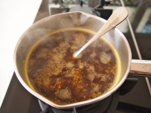 To make the okonomiyaki, mix the two different flours, the dashi, salt and water in large bowl. Add the cabbage, carrot, spring onions, ginger, panko crumbs and eggs. Stir until just combined, don’t over mix. Heat a small non-stick fry pan (about 15-20cm diameter) over medium heat. Add a small amount of vegetable oil and when hot add enough of the batter to make a fritter that covers the base of the pan and is about 1.5cm thick. Cook until it’s golden on the base and beginning to set, about 6-8 minutes. Turn and cook on the other side until it is cooked through about another 6-8 minutes. Remove and place on a baking tray and keep in a warm oven while you make the rest. Repeat the above process until all the batter is used – you should be able to get 2-3 pancakes, depending on the size of your pan and the thickness of the okonomiyakis.