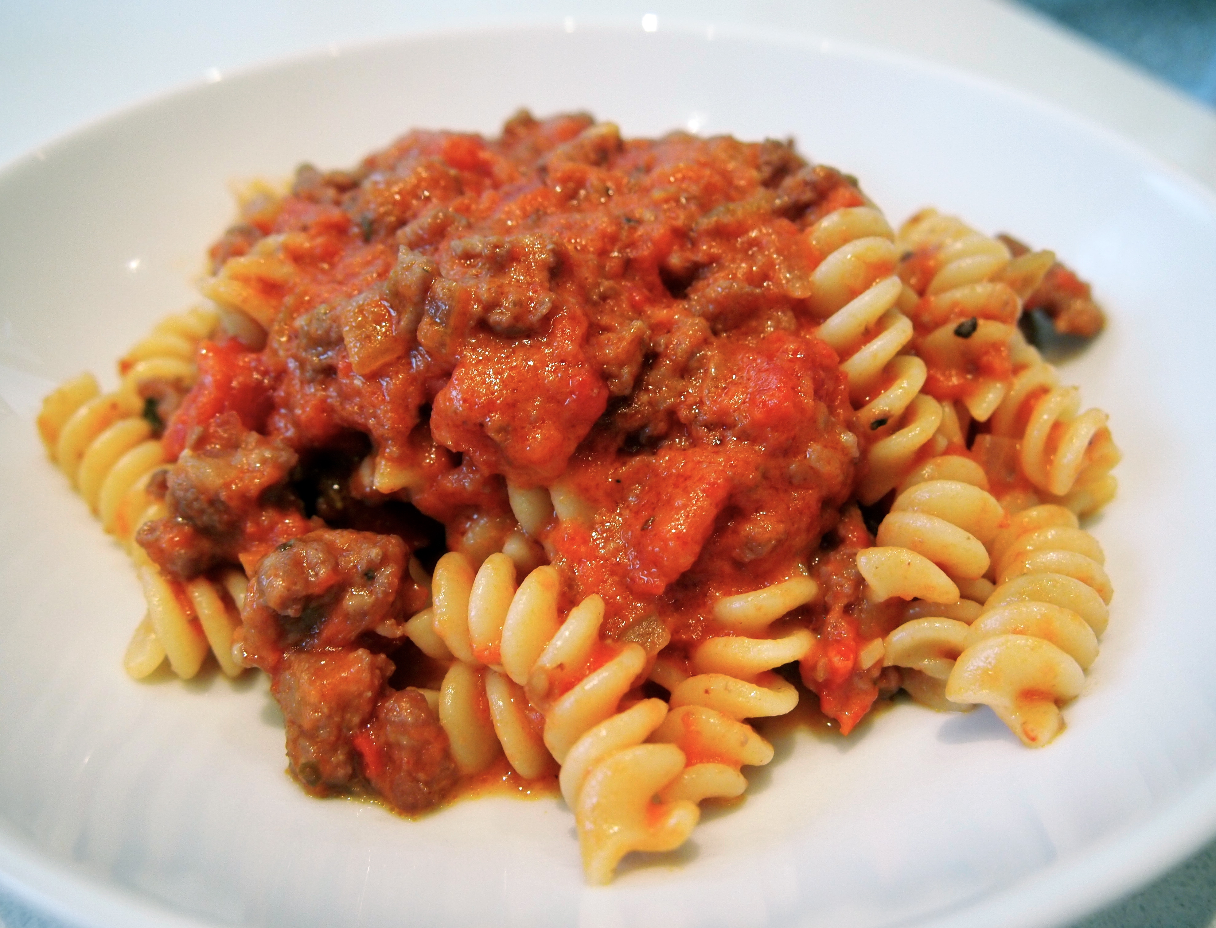 I know this sounds like an obscenely rich combination but funnily enough it doesn’t strike you that way when you eat it. The cream does add a lovely luxurious richness to the the dish but some of that heaviness is alleviated by the acidity of the tomatoes. In any case it’s just plain delicious and a real crowd pleaser. Kids love this pasta sauce especially if you use sausages that are a little on the mild side – when I make it for the family I use organic beef sausages but for a more adult flavour I like to use Italian pork and fennel sausages. The best pasta shape for this sauce is a short pasta like penne, rigatoni, or as pictured, fusilli. For a fantastic Italian feast all you need to accompany the pasta is a green salad, some garlic bread, a bottle of chianti (dripping wax candle optional) and Dean Martin crooning in the background.