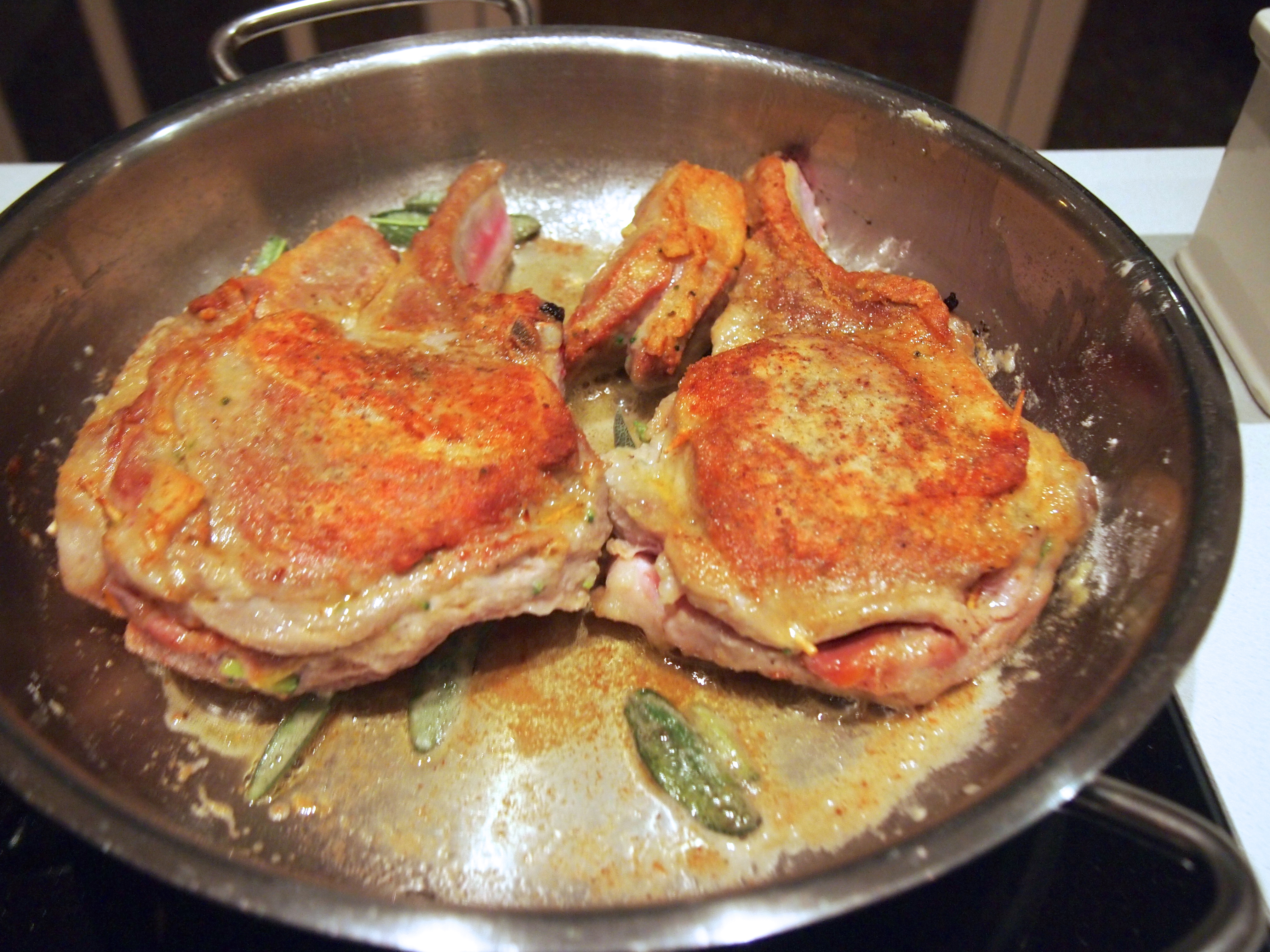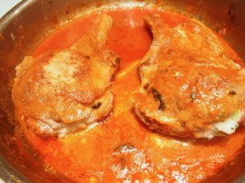 The chops can also be cooked in the oven: Preheat oven to 180C. After adding stock to the pan, set the uncovered pan in a hot oven and bake, basting periodically for 15 minutes.