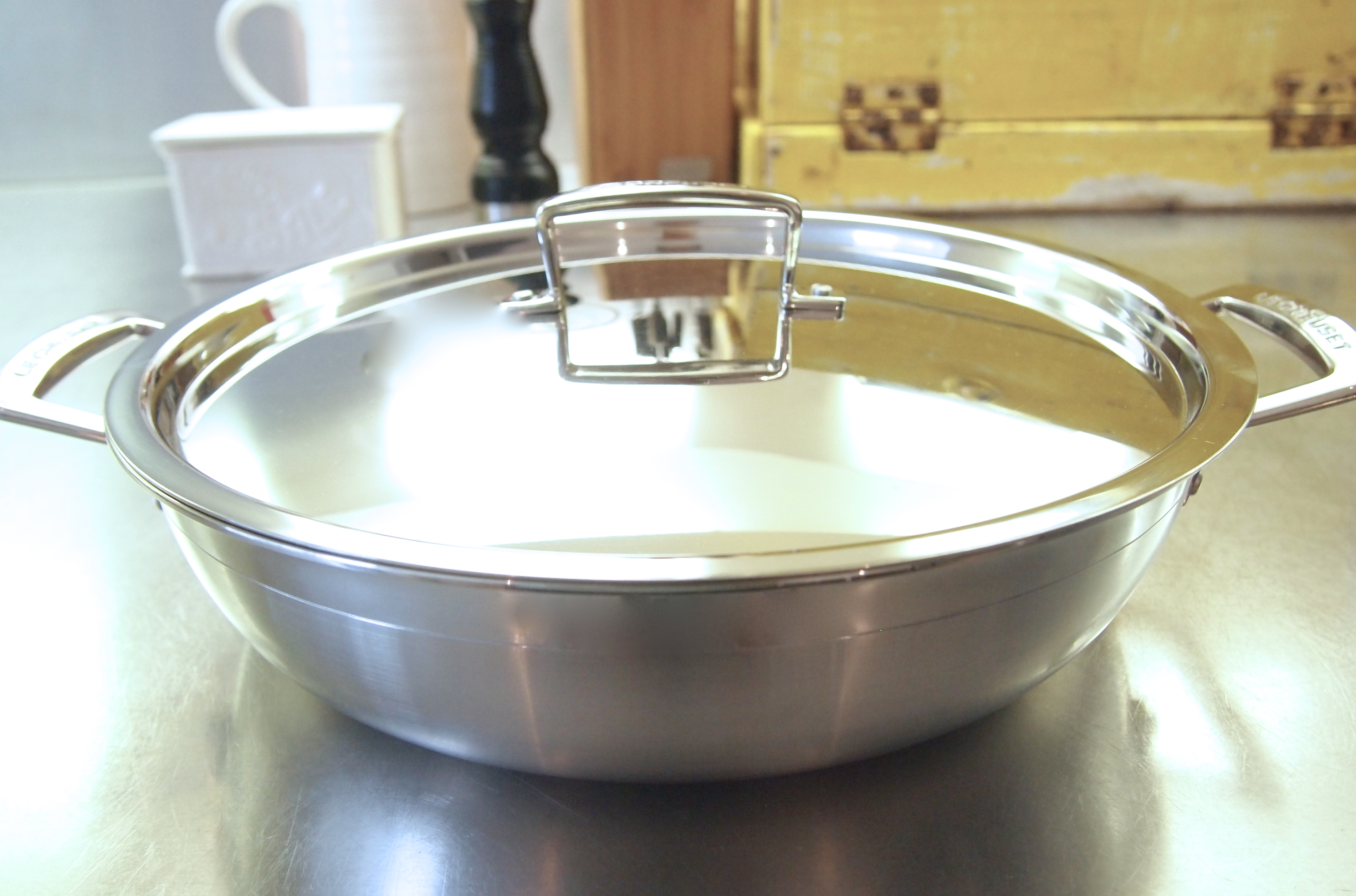 For the second post in the Cooking with Le Creuset Series I’ve decided to road test a lidded casserole from their new stainless steel collection. Now when you think Le Creuset and casserole the first thing that springs to mind is their enamel cast iron pans which are famous the world over. Most people are familiar with them and if you’re lucky enough to own one you’ll know they are the sort of pans that last a life time and more – I have friends who have inherited their grandmother’s Le Creuset cast iron pans! I’ve had my large round Le Creuset casserole for almost 20 years and it’s still as wonderful as the day I took it out of the box. So whilst there’s certainly a spot in every good kitchen for a nice heavy cast iron pan or three, there’s also a need for good quality stainless steel pots and pans and it’s these pans that form the back bone of most kitchens. So I was interested to see how Le Creuset’s stainless steel range would perform and I thought it would be good to choose a recipe I would normally use my cast iron pan for and see how it fared in stainless steel.