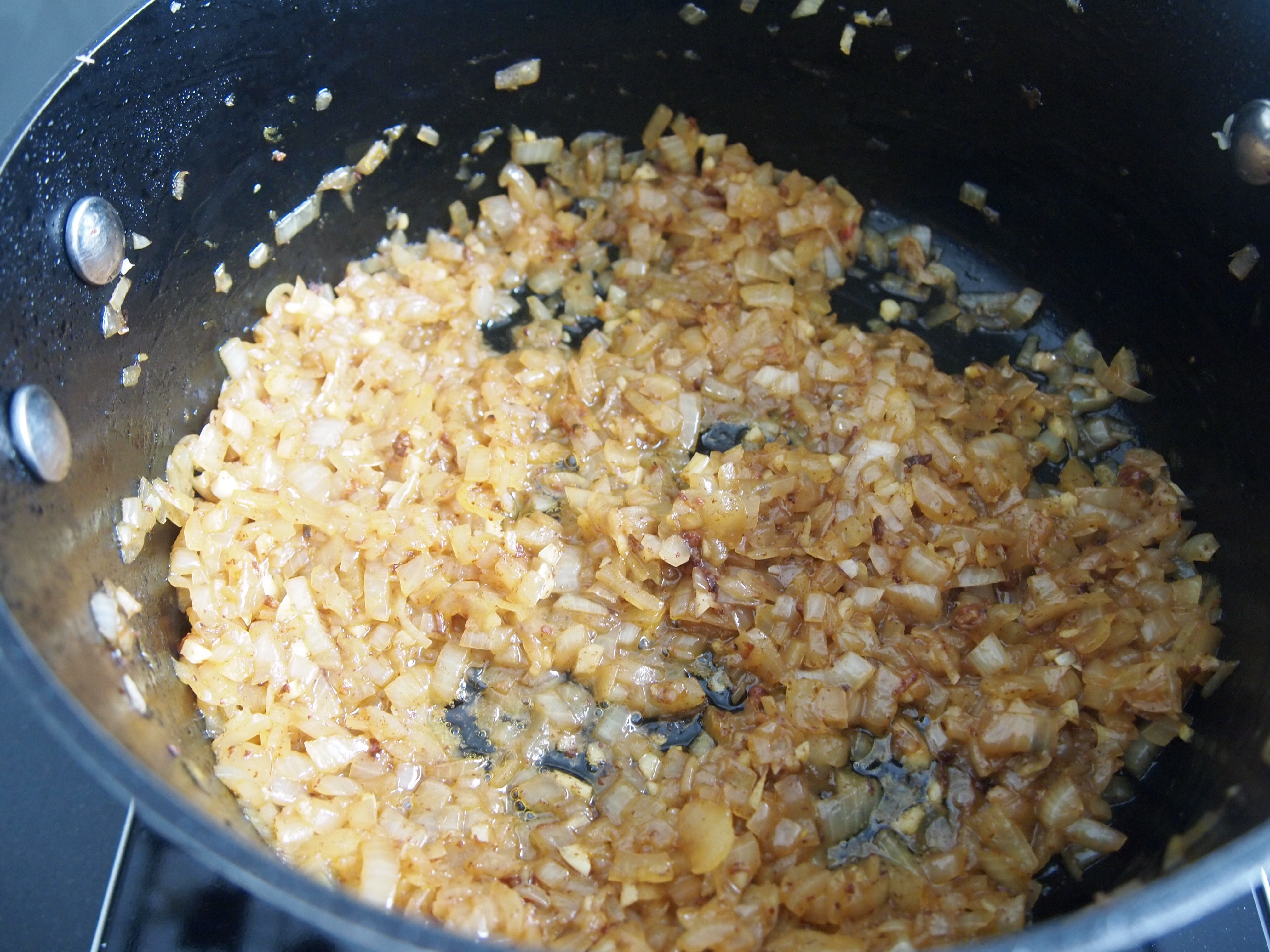 To the same pan add the onions and cook until they are soft, about 8 minutes. If you find the onions are catching add a little water. Add the garlic and cook for a another minute. Add the tomato paste and stir it through the onions well then add the diced tomatoes, plus one can of water, the sugar and season with salt and pepper. Bring to the simmer and add the sausages back to the pan along with any accumulated juices. Bring to a simmer again and cook uncovered for 20-30 minutes on low heat. Remove from the heat and let it cool.