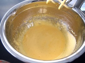 Pre-heat oven to 180C. Use an electric beater or stand mixer to cream together the egg yolks and sugar until pale and fluffy. Add the cream and vanilla and beat to combine. Pour the filling into the tart, making sure the dates are covered. I find it easier to place the tart on a baking sheet in the oven and the pour in the filling. Make sure you don’t let the filling over flow.
