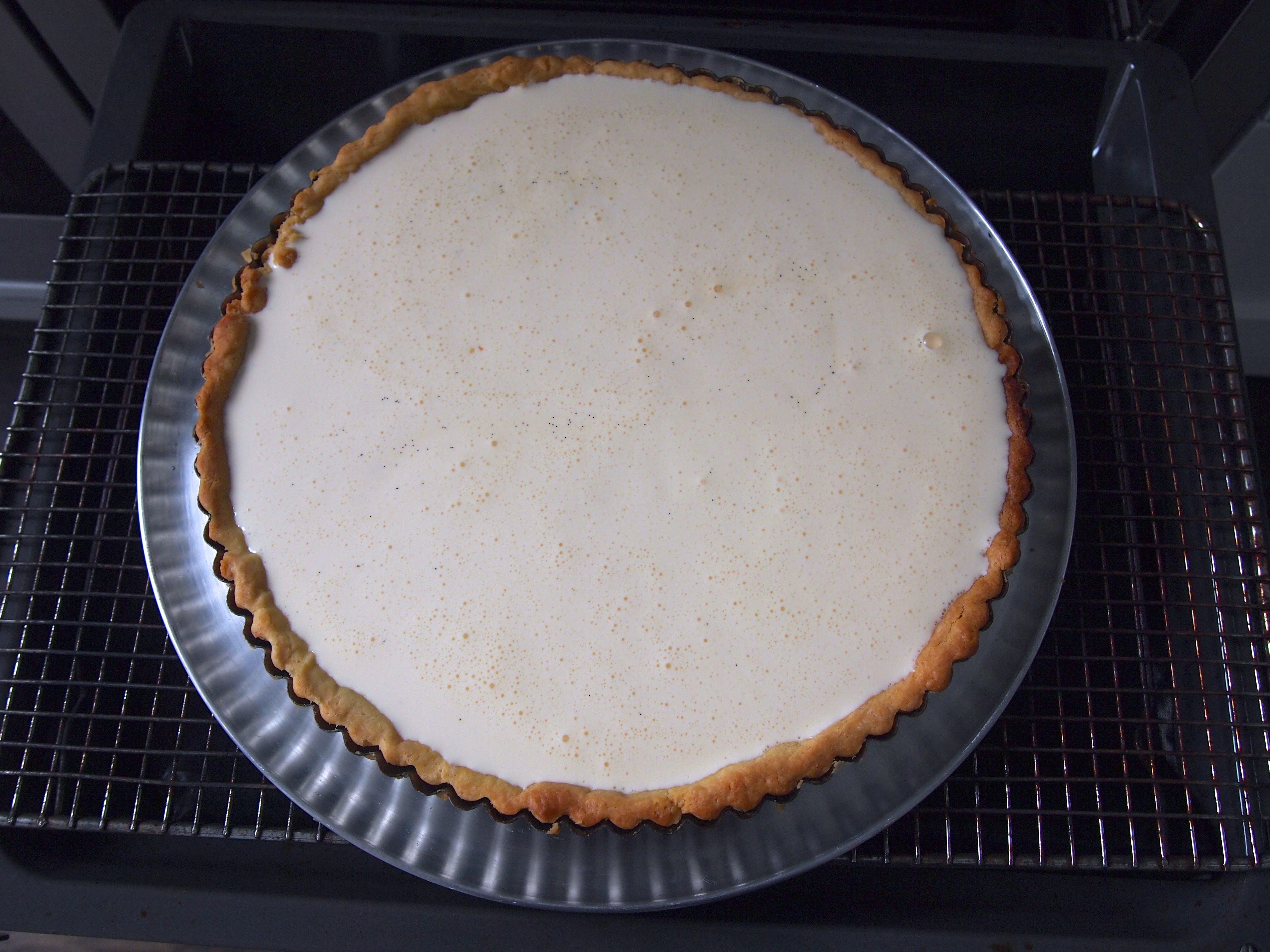 The iconic date tart served at legendary Sydney restaurant Rockpool was originally created by Lorraine Godsmark and whilst Lorraine has long since departed Rockpool to start her own Patisserie (where she also sells this date tart) it’s still on the menu at Rockpool and I couldn’t imagine ending a meal there without it. There’s a good reason why this tart has gained such culinary cult status – it’s unbelievably delicious and if you’ve ever tasted it you’ll know that it’s one very special tart. Trying to fathom the recipe is no easy feat as it’s a closely guarded secret and whilst this version may not be the exact recipe Lorraine created it’s pretty darn close. The list of ingredients and the concept is pretty simple but I think the real trick is in the cooking time and temperature. In order to achieve the incredibly silky, just set custard, of the original you need to really monitor the oven heat. After various attempts I found that starting in a pre-heated oven at 180C and then lowering the temperature by 10 degrees every 10 minutes produced the best results. The one thing you don’t want to do is to overcook it or cook it at too fierce a heat. It should be taken out of the oven whilst it’s still wobbly in the centre as it continues to firm as it cools. This tart is prefect on its own and doesn’t need any accompaniments but if you need to make the tart stretch out to feed a large number of people, like I did a few weeks ago, then I can highly recommend pairing it with coffee ice cream – I made a batch using a David Lebovitz recipe and it was amazing, I’ll post the recipe shortly.