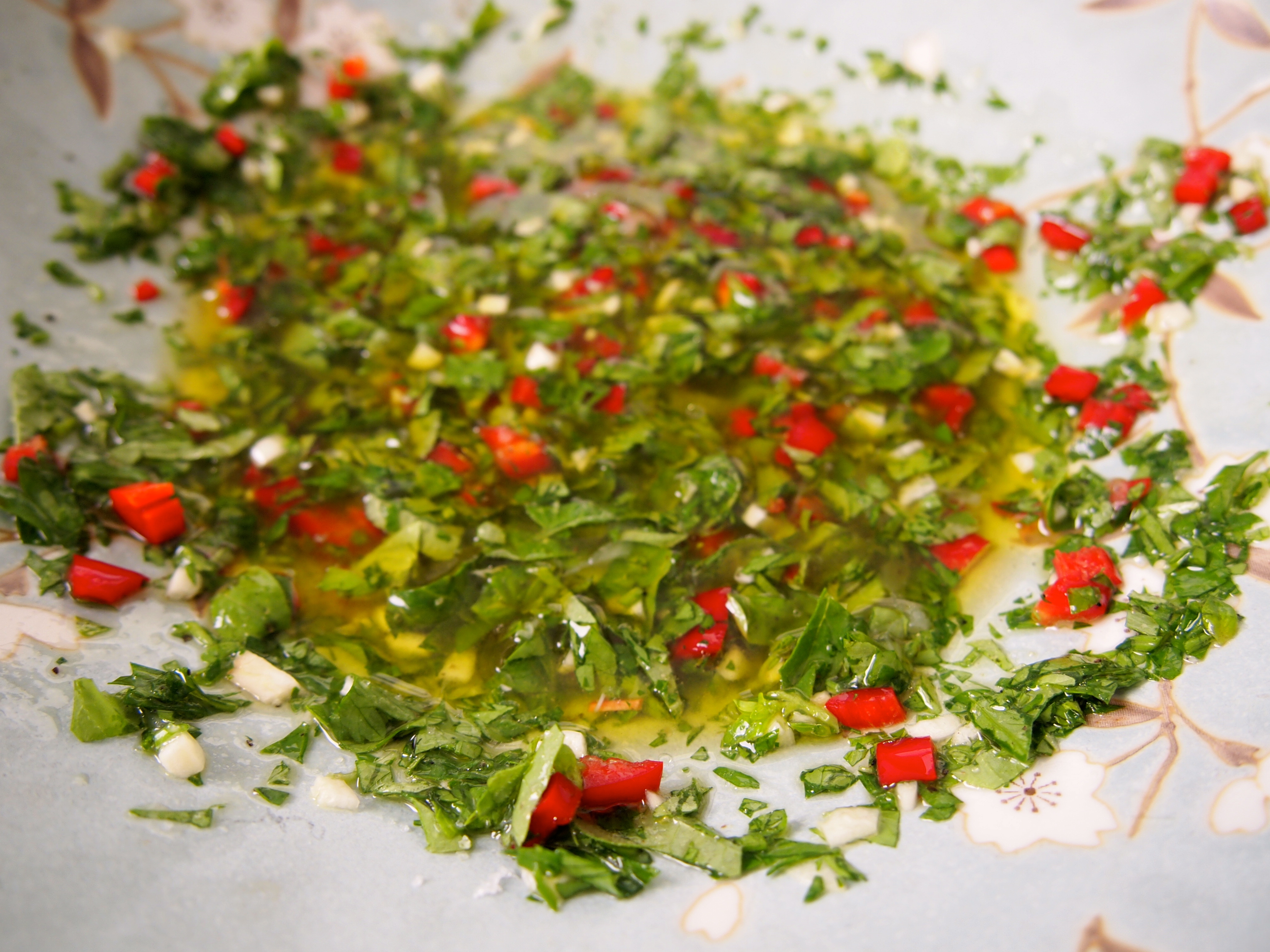 This is another winner of a recipe from Yottam Ottolenghi. If you have a fondness for eggplant you’re going to love this dish. I normally find eggplant that has been baked rather than fried a little on the dry side. It’s great that it’s healthier but it lacks the silky soft quality that eggplant has when it’s been fried. Ottolenghi has found the perfect cure for this by marinading the baked eggplant in a dressing of garlic, herbs, lemon and olive oil which slowly seeps into the eggplant infusing it with wonderful tastes and aromas. I love side dishes that can be prepared in advance and this one not only can be, but has to be. I find the longer it sits the better it tastes and I usually make it in the morning and leave it at room temperature to marinade until dinner time. You could also make it the night before and keep it in the fridge but make sure you let it come fully to room temperature before serving. These marinated eggplants would also be wonderful as an appetiser on top of bruschetta or just served with some warm flat bread.