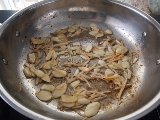 Remove all but two tablespoons of the duck fat from the pan (don’t throw away the rest of the duck fat as it’s great to keep in the fridge for the next time you roast potatoes) turn the heat down slightly and add the garlic and ginger and cook gently for a two minutes or until lightly golden.