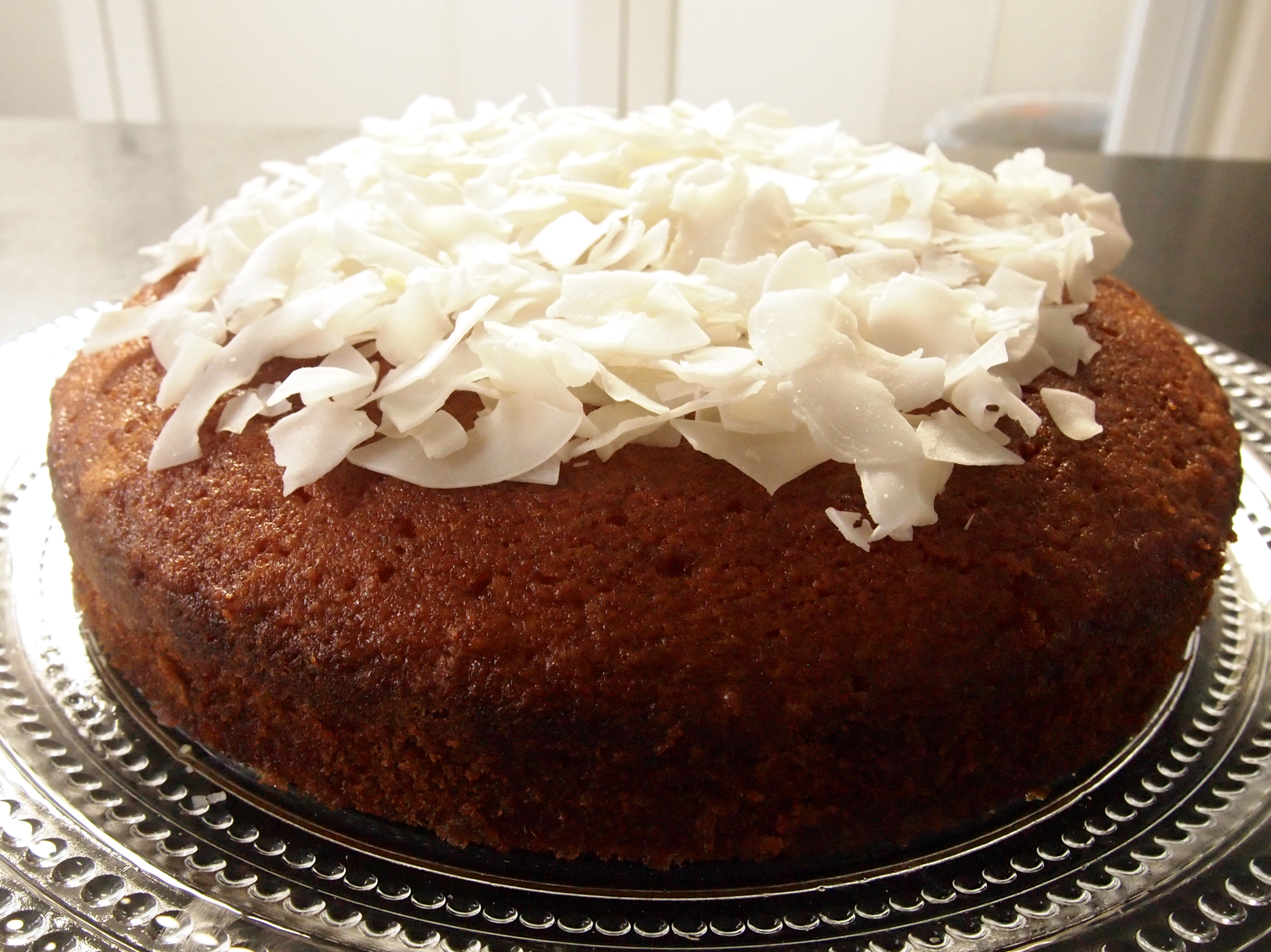 This is a lovely moist cake that is wonderful both as a dessert or a coffee cake. The moistness is due in part to the coconut but it’s mainly the lemongrass syrup that is poured over the cake once it’s cooled that makes it super soft and luscious. I love cakes that are doused with syrup, especially when the syrup is infused with some off the cake flavours, which in this case is lemongrass. This is a very simple cake to make. All the ingredients come together in a food processor and the only thing to note is the lemongrass needs to be finely chopped before it goes into the processor and to run your machine for as long as necessary to ensure the lemongrass and sugar form a very fine paste. I always struggle to find desserts to serve after an Asian meal but this cake with its subtle exotic Thai flavours has solved the problem and is new my go to dessert for such occasions.