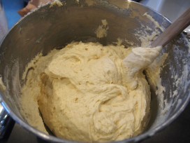 One at a time, add the eggs and egg yolks, mixing just until combined in between additions. Scrape down the sides of the bowl as needed. Combine the cake flour, baking powder, baking soda and salt. Sift them together through a fine mesh strainer. Add the dry ingredients, alternating with the milk/sour cream mixture, starting and ending with the flour. Make sure you don’t over mix, scraping down the sides of the bowl as necessary. Give the batter one good, final stir with a rubber spatula.