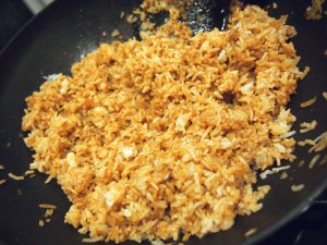 5 cups cooked white rice, chilled or at room temperature – it’s crucial for the rice to be at least a day old. Fresh rice will just turn gluggy.