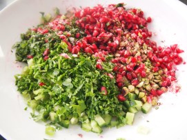 This is another recipe from Rick Stein’s latest book From Venice to Istanbul. The salad originates from Turkey and is called Kisir. I recently served it as part of a Middle eastern dinner which included another recipe from the same book – baked pumpkin with crispy onions and tomato. This salad makes for a lovely light and refreshing side dish. The addition of the pomegranate adds a nice tangy note and it was great in cutting through some of the richness of the slow cooked lamb I served alongside it. I’ve adjusted some of the amounts in the recipe below as I think the dressing needed more of a pomegranate molasses kick. You can make this salad using either pearl barley or freekeh. Freekeh is dried green wheat, harvested while the grains are still soft, then sun-dried. It is very common in the Middle East and is probably what they would use in Turkey but pearl barley is similar in texture, taste and size and is easier to source. There isn’t much this salad wouldn’t pair well with – anything from lamb, poultry or seafood and is especially good as a side salad for grilled meats.