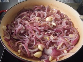 3 large red onions, sliced