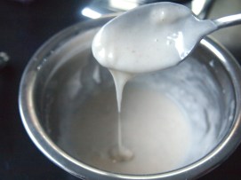 As the cake cools, make the icing. Beat together the icing sugar, cardamom and 25ml of the yogurt, adding a tiny bit more yoghurt if the mixture seems too stiff. (It should be a thick drizzling consistency: too thin and the icing will slide off the cake – too thick and you won’t be able to drizzle it.)