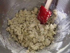 In the bowl of an electric mixer fitted with the paddle attachment, cream the butter and cheese together for 1 minute, or until smooth. With the mixer on low-speed, add the flour, salt and pepper and mix until it’s in large crumbles, about 1 minute. Add 1 tablespoon of water and mix until combined.