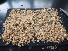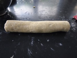 Dump the dough onto a floured board, press it into a ball, and roll into a 12-inch long log. Brush the log completely with the egg wash. Spread the walnuts in a square on a cutting board and roll the log back and forth in the walnuts pressing lightly, and distributing them evenly on the outside of the log. Wrap in plastic and refrigerate for at least 30 minutes or for up to 4 days.