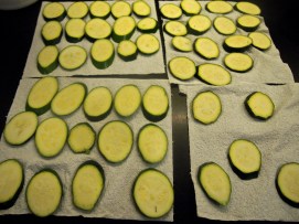 Line an oven tray with paper towels. Place zucchini on tray and stand to drain for a minimum of 30 minutes ut the longer you can leave them out the better they will be. Pat dry with paper towel.