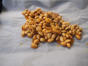 I’m a big fan of semifreddos. They are the perfect answer to homemade ice cream for those that don’t own an ice cream maker. They’re super easy and a great make ahead dessert. Even though I do have an ice cream maker I find that I veer towards semifreddos a lot more than traditional ice cream – they are a dessert within themselves, a whole package and don’t require anything else to go along side. Not to mention that due to my small freezer I need to know a couple of days in advance of when I want to make ice cream so I can freeze the bowl, and I am never that organised! This particular semifreddo has become a favourite. Not only do the toffee encrusted nuts adorning the semifreddo make for great presentation but there’s something very addictive about the combination of crunchy nuts and creamy ice cream. You can swap out the almonds for another type of nut, macadamia’s in particular work well.