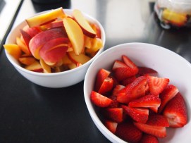 If you need an easy Christmas dessert that’s delicious and a total crowd pleaser then a trifle might be just what you’re looking for. Now you can go all high-brow with trifles and make every element from scratch and there’s no problem with that at all, if you have the time and inclination, but a trifle is one of the rare instances where I’m not sure the extra work results in a better end result. At the end of the day a trifle is a mish-mash of flavours and textures – a kind of sweet mushy mess, so spending an afternoon making your own sponge or Swiss roll is probably a wasted effort. In this trifle everything is pretty much store-bought and hence it’s merely an assembly job. The only time-consuming element is waiting for the jelly to set and for the trifle to sit in the fridge for all the layers and flavours to meld. The only caveat to this being a great trifle is you need to buy really good quality store-bought ingredients. Look for the best ready-made custard with real vanilla seeds (no packet powered custard) and a sponge from a nice bakery – you get the picture. I’ve used fresh peaches and strawberries but you can sub it with any fruit you like and even use canned fruit in a pinch. I’ve kept this trifle booze free so as the kiddies can dig in too but of course feel free to douse it with your favourite tipple if you want to. Once you’ve stocked up on the ingredients it’s a breeze and you’ll end up with a dessert that looks impressive and will feed 8-10 greedy people.