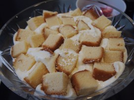 Make the jelly as per the packet instructions and pour it into a large container (so as there is a thinnish level of jelly in the dish) and place into the fridge to set. Cut the sponge cake into large dice or slice the jam swiss roll into 1cm pieces. Place the cream and condensed milk into the bowl of an electric mixer and beat until soft peaks form. Set aside until needed.